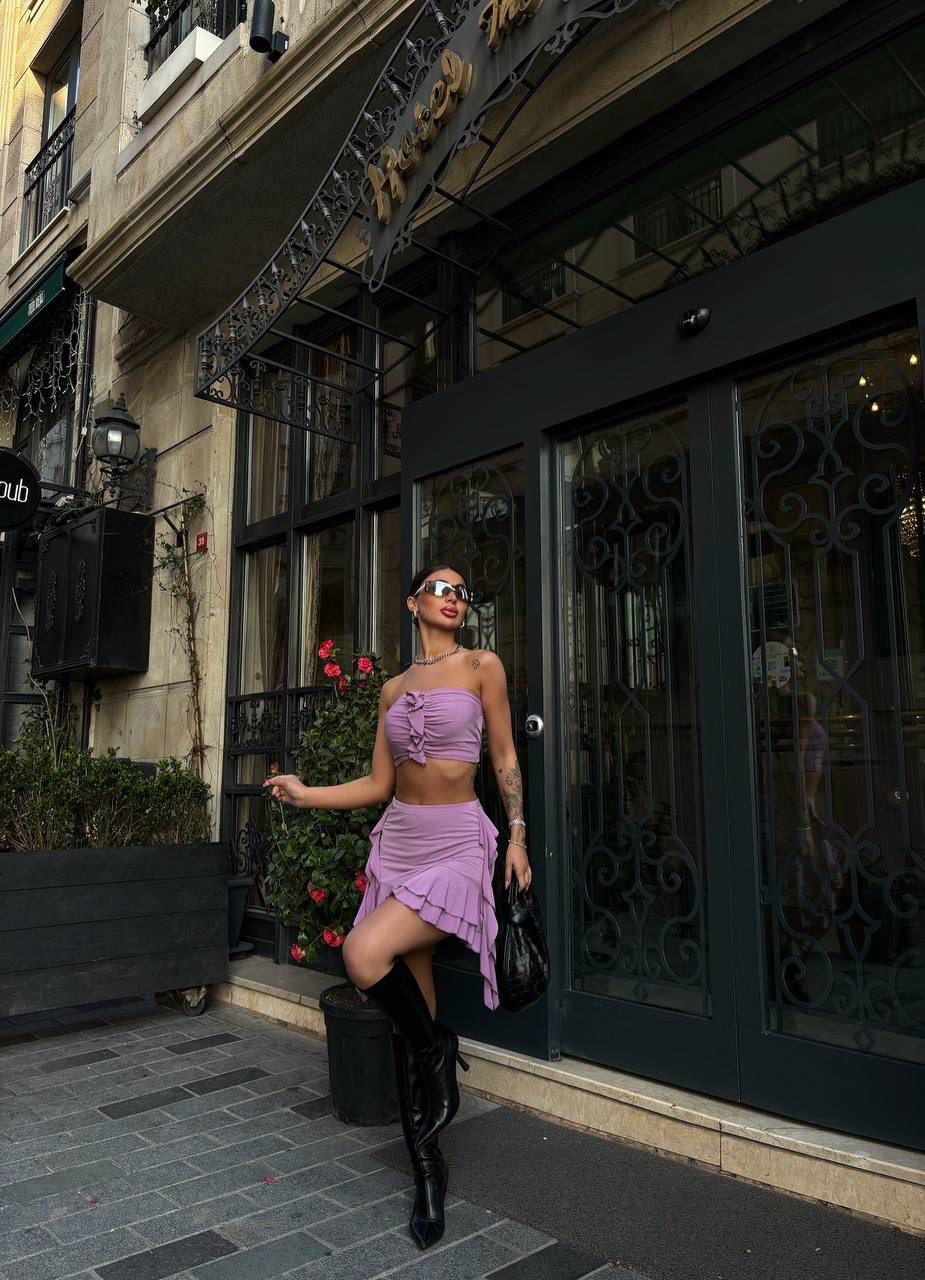 Pregătește-te să cucerești vara cu „Solea Duo” – un compleu fresh, feminin și extrem de versatil, perfect pentru zilele însorite și serile relaxate. Format dintr-o fustă mini cu croială lejeră și un top scurt, ușor cambrat, acest set aduce un aer casual, dar cu stil, în garderoba ta estivală.