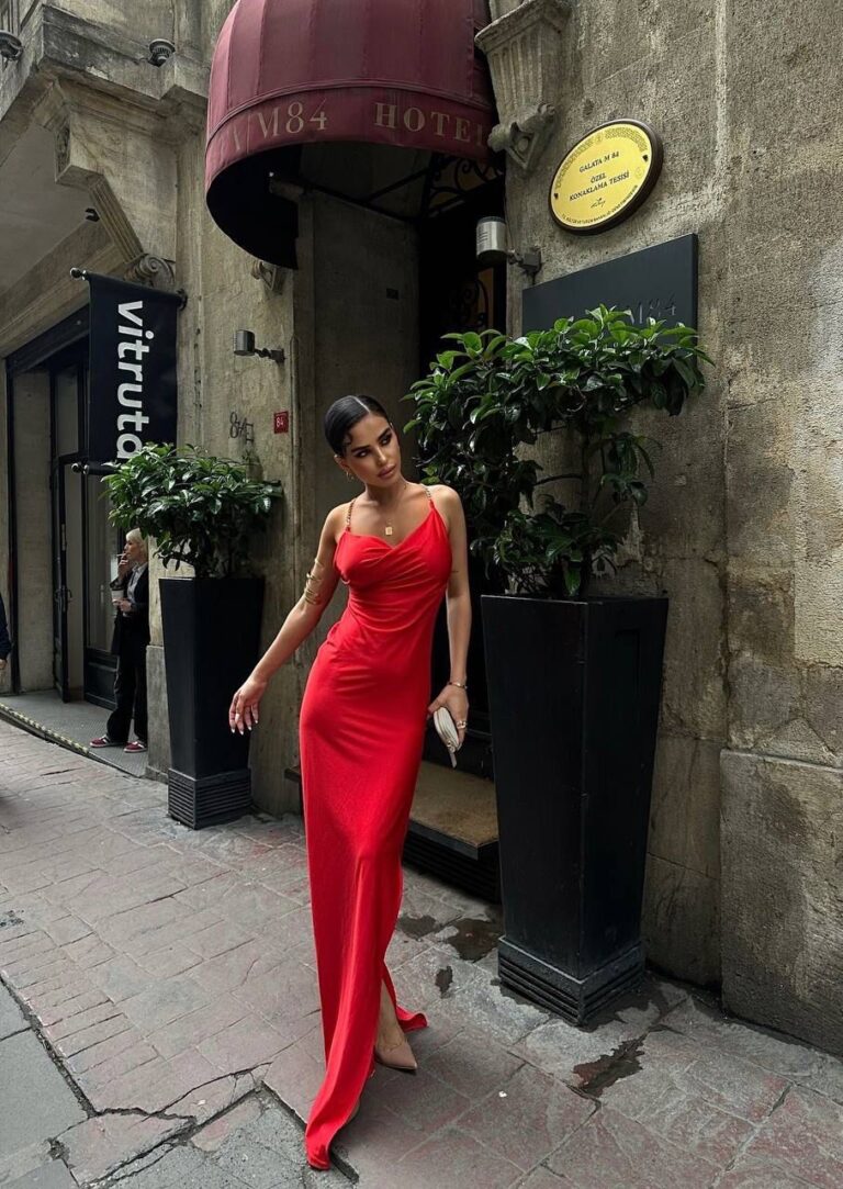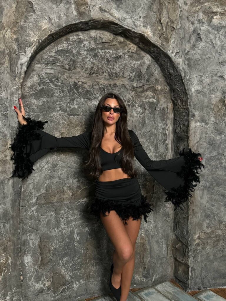 Modelul are 170cm înălțime, 60kg și poartă mărimea S.