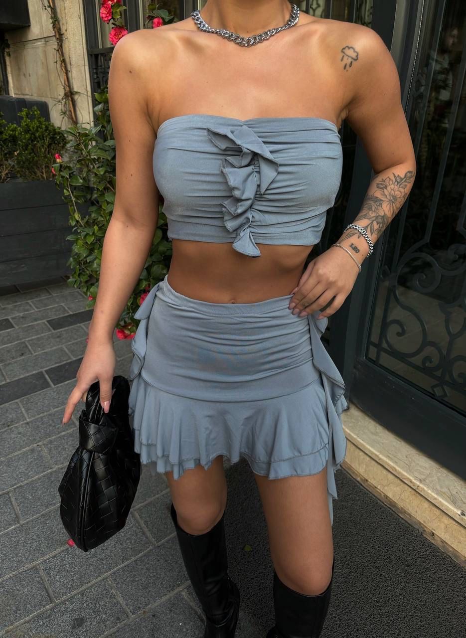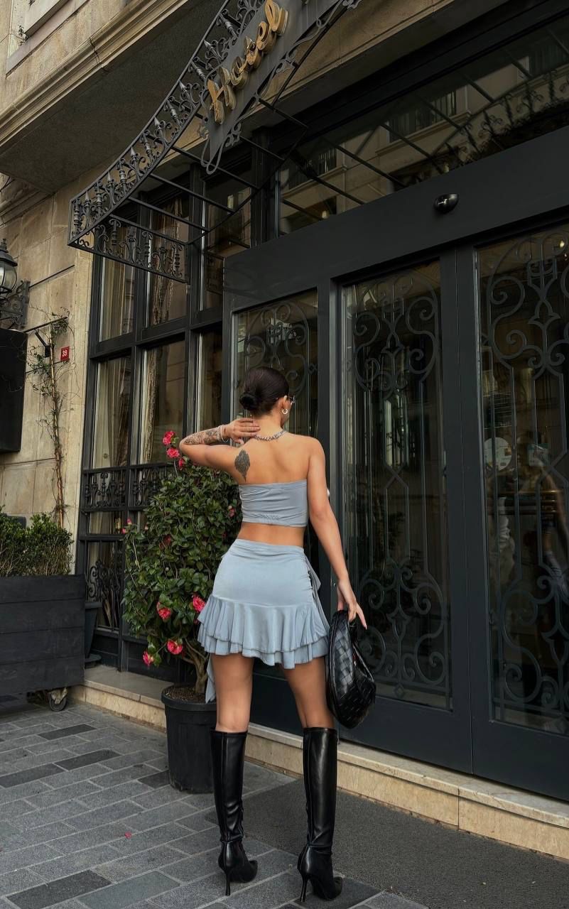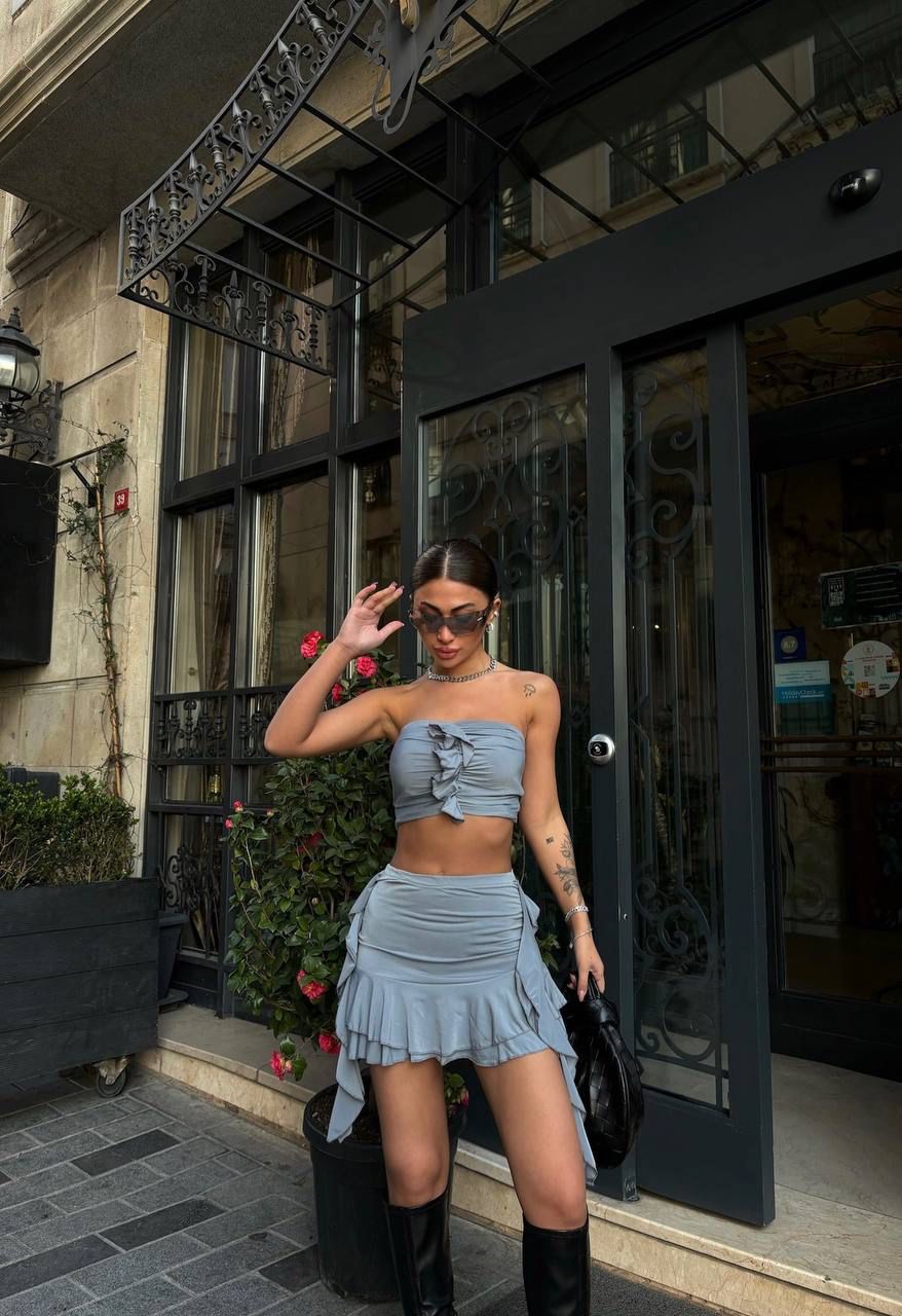 Pregătește-te să cucerești vara cu „Solea Duo” – un compleu fresh, feminin și extrem de versatil, perfect pentru zilele însorite și serile relaxate. Format dintr-o fustă mini cu croială lejeră și un top scurt, ușor cambrat, acest set aduce un aer casual, dar cu stil, în garderoba ta estivală.